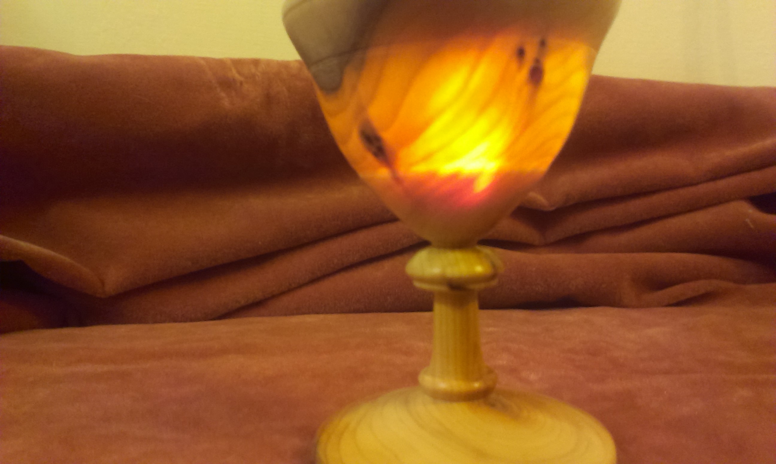 A Miniature Goblet in English Yew, with a "Translucent" band in the cup, turned on only my 13th DAY of woodturning, using the RP2000 Compact Scroll Chuck. This Chuck is PERFECT for anyone who likes to turn Miniature Projects!