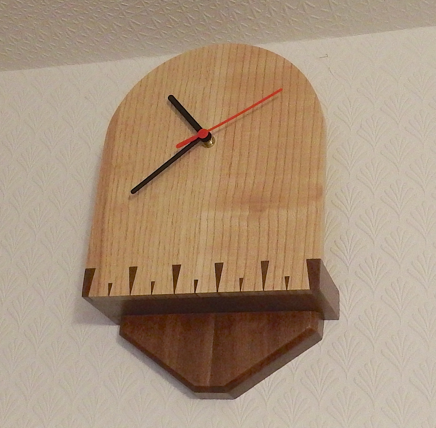 Houndstooth-dovetailed wall clock in ash and sapele