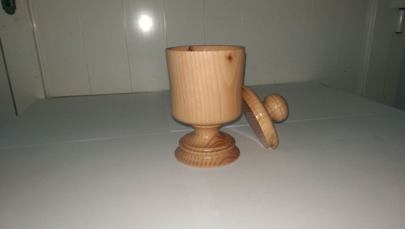 Wooden Cup with Lid made in pine wood, finished with sanding sealer and gloss varnish