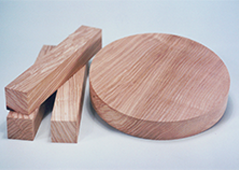 I took all the material out of one short board of 2” ash, cutting the biggest diameter I could get for the seat, a bare 11”, and then three legs at 12 ½” long, picture 1. I started with this seat blank, getting an initial fixing with a faceplate screwed on to what is to be the top surface, picture 2. Take care here though, because if you use long screws you will leave screwholes that can’t be turned away when you eventually come to shape the top. I used ¾” screws in a 4” faceplate, so the overall projection into the wood was only ½”. |