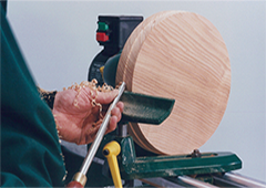 If you use twinstart screws you can screw them straight in, there is no need to drill a pilot hole, and therefore no risk of drilling too deep. Mount the blank on the lathe and do check these large diameters carefully for clearance before you start up. I set the lowest speed to start with just in case. On my Record Number 1 this is 450 rpm, and I then used a 3/8” bowl gouge to trim the outer diameter, picture 3, then swung the rest round and true up the face. |